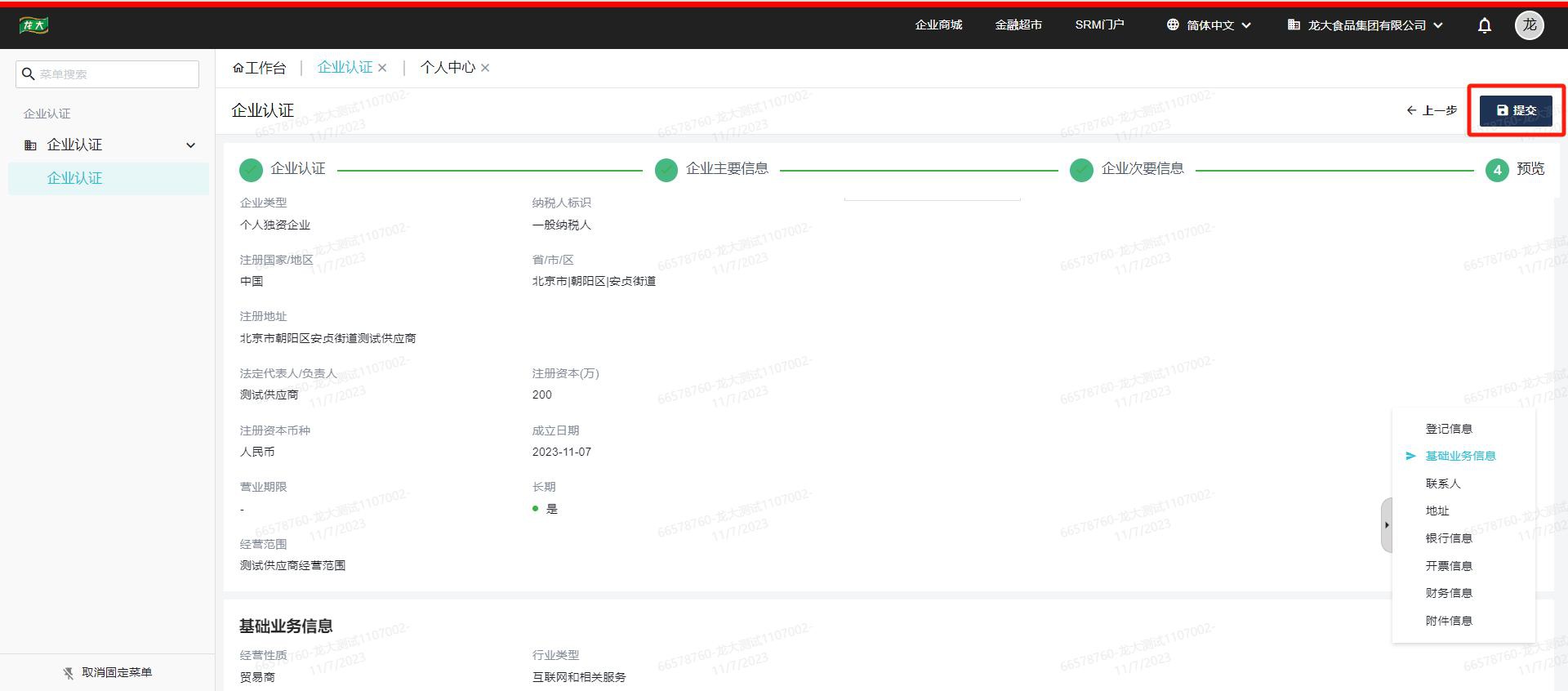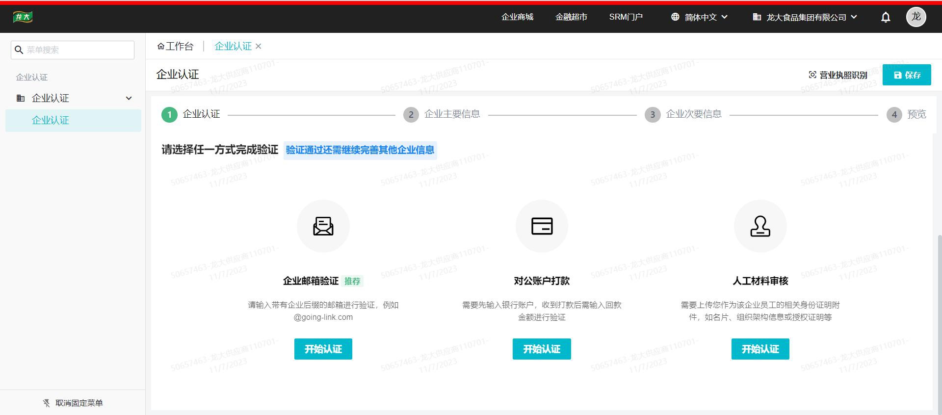 4、中小型企业公司公司检验确认后,按顺序输入中小型企业公司公司重点的信息、中小型企业公司公司每项的信息、浏览定期检查没有原因后,选择右上角还需准备实名验证资格审查。登记实名验证整个过程中如遇原因,可沟通甄云人工客服:400-116-0808应对,或与渠道对接的人沟通。