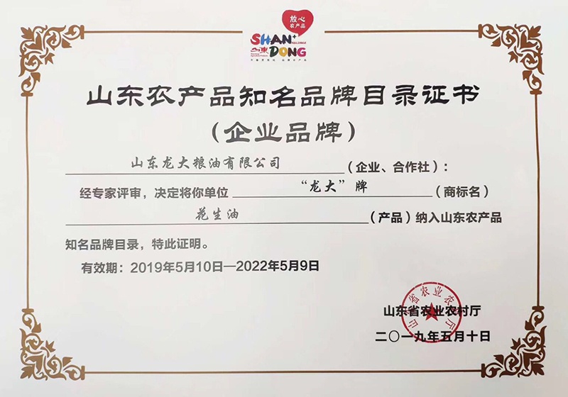 老子有钱lzyq88花生油获评山东省第四批知名企业产品品牌
